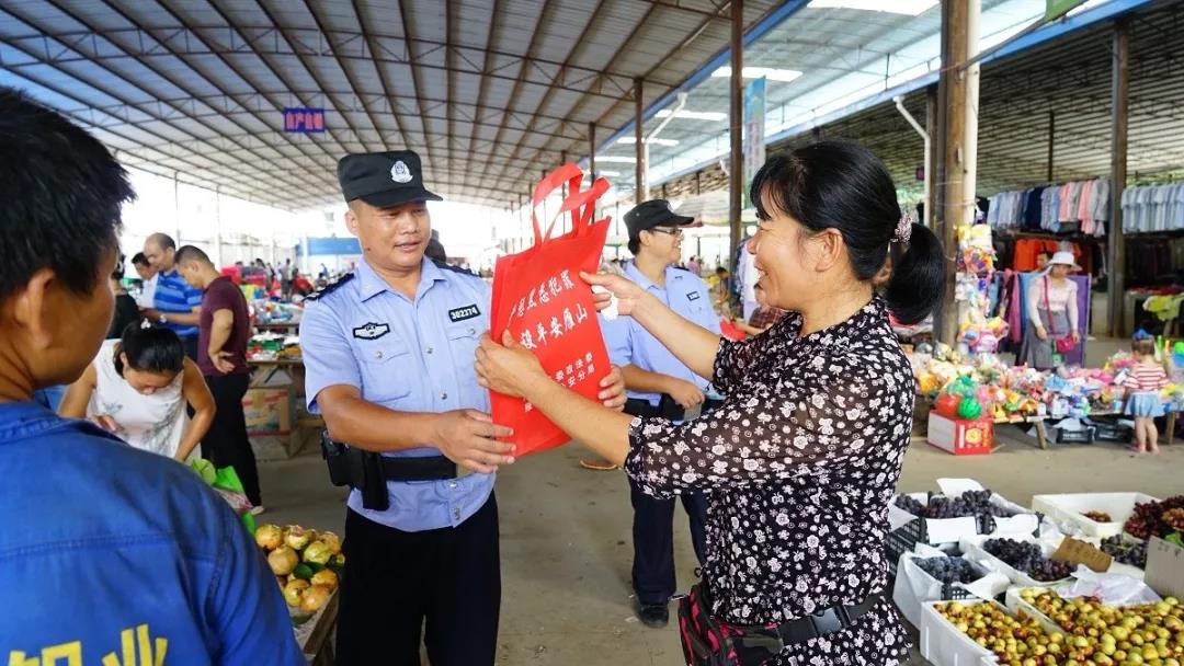 为推进“平安建设”,进一步提升群众安全感满意度和扫黑除恶专项斗争满意度(以下简称“三提升”),雁山分局坚持党建引领,以创建“枫桥式公安分局”为抓手,认真贯彻落实雁山区党委政府《2019年雁山区提升群众安全感和政法队伍满意度、扩大扫黑除恶专项斗争成效、社会稳定动态八项指标提档进位》工作的决策部署,2019年9月16日,在雁山分局的精心组织下,联合区委政法委、司法、乡镇政府等部门走进柘木,在柘木镇圩场开展以“党建引领聚合力,全力助推‘三提升’”主题的宣传活动,取得了良好的宣传效果。