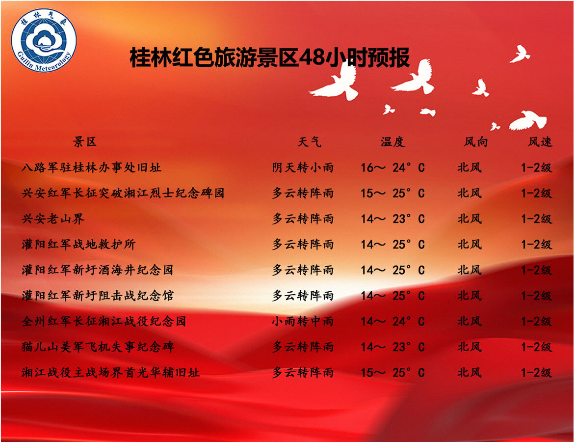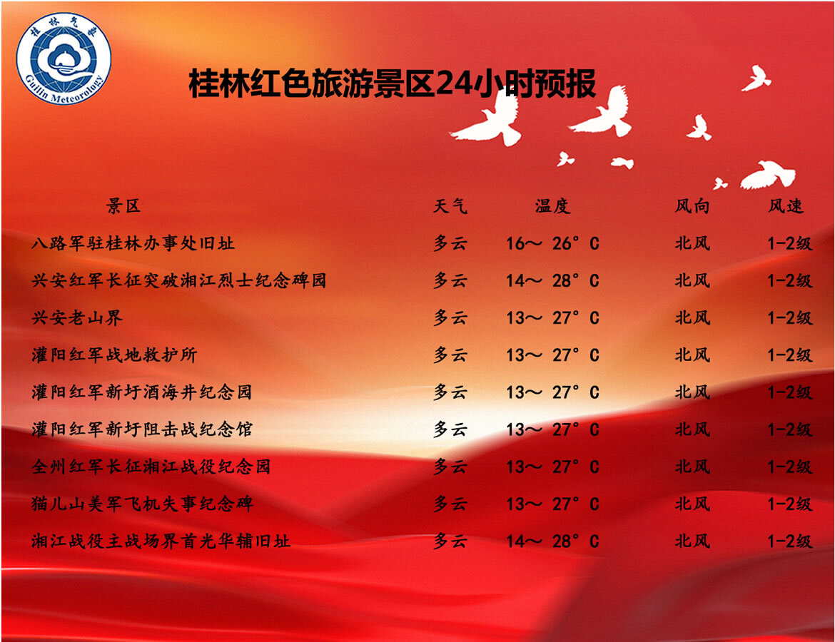 桂林市气象台2026年4月3日16时发布【红色革命教育基地24-48小时天气预报】