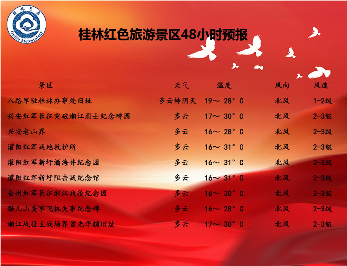 桂林市气象台2026年4月17日16时发布【红色革命教育基地24-48小时天气预报】