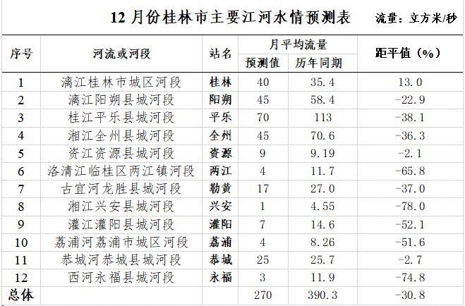桂林水文中心12月3日发布12月桂林市主要江河水情预测