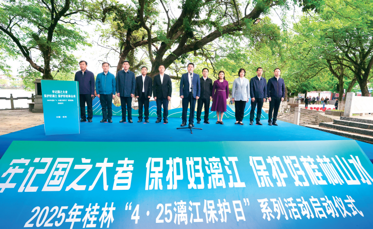 4月25日,2025年桂林“4·25漓江保护日”系列活动启动仪式在兴安县灵渠公园举行。活动深入贯彻习近平生态文明思想,全面落实习近平总书记关于广西工作论述的重要要求和对桂林的重要指示精神,更好宣传展示漓江保护成果,更广泛汇聚守护一江碧水的磅礴力量,切实增强公众自觉保护漓江的意识。市委书记、漓江风景名胜区党工委书记李楚出席并宣布活动启动,市委副书记、市长、漓江风景名胜区管委会主任卢新华主持,市人大常委会主任赵仲华、市政协主席陈丽华出席。
