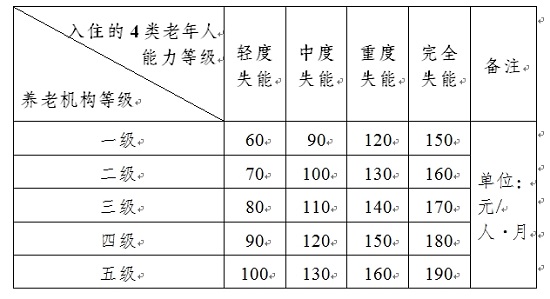 第十一条 民办养老机构运营补贴根据《老年人能力评估规范》(GB/T 42195—2022)、《广西养老机构等级评定管理办法(试行)》(桂民规〔2020〕2号)的评定结果和本办法第五条规定的4类人员数量,按照下列标准执行。